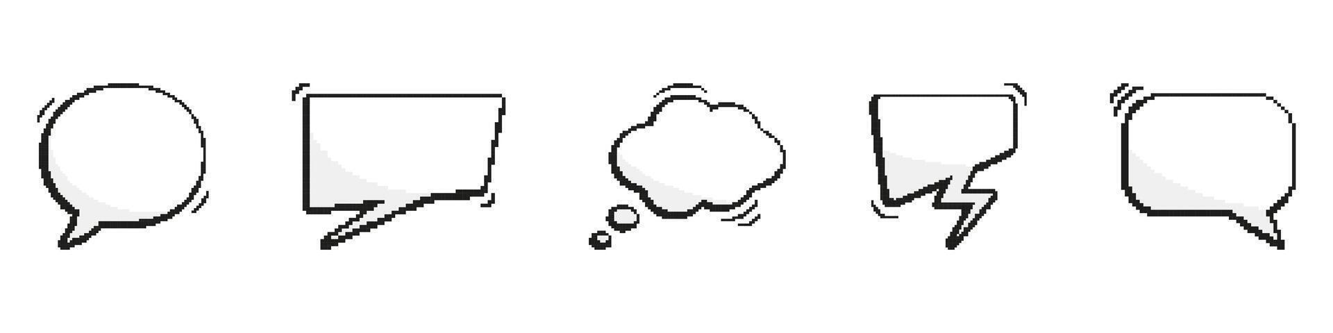 Retro Speech Bubbles Icon Set in Pixel Art. Pixelated Dialogue Bubbles Icons. Old Nostalgic Design. Isolated Illustration Pro Vector
