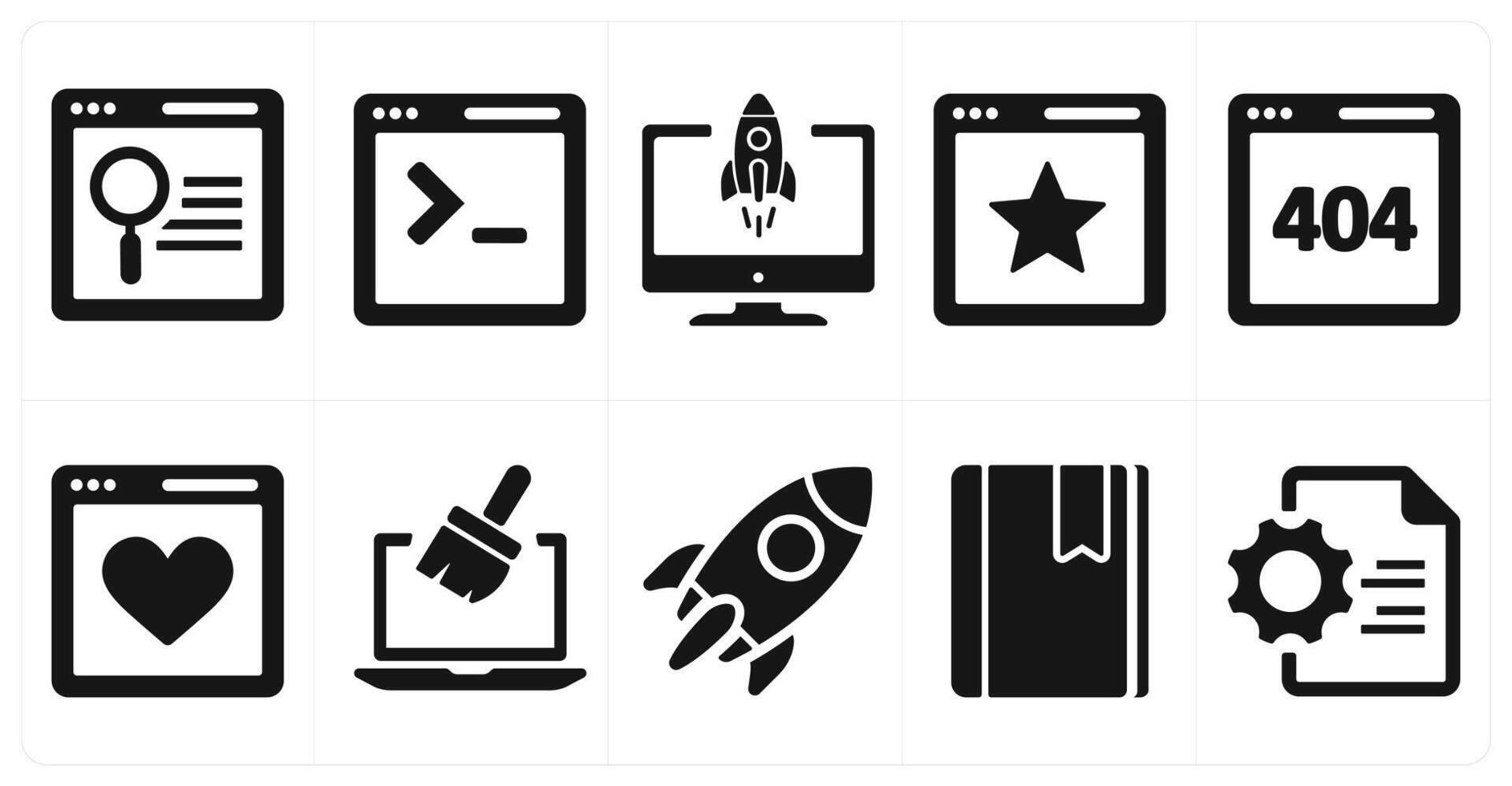 A set of 10 web marketing icons as search webpage, website coding, website launch Pro Vector