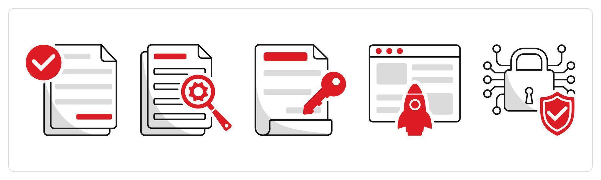 A set of 5 blockchain icons as smart contract, data, digital key Pro Vector
