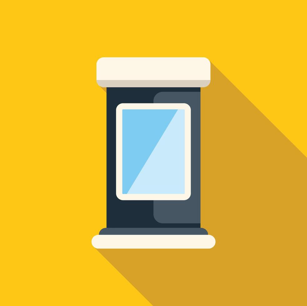 Interactive kiosk showing blank screen displaying information on yellow background Pro Vector