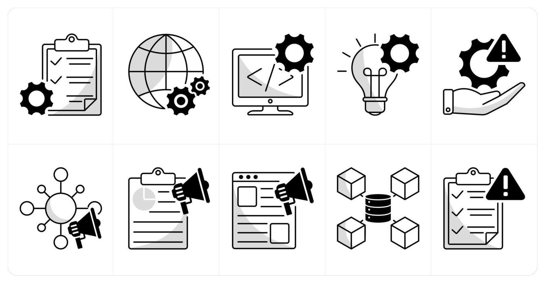 A set of 10 business icons as project management, global setting, development Pro Vector