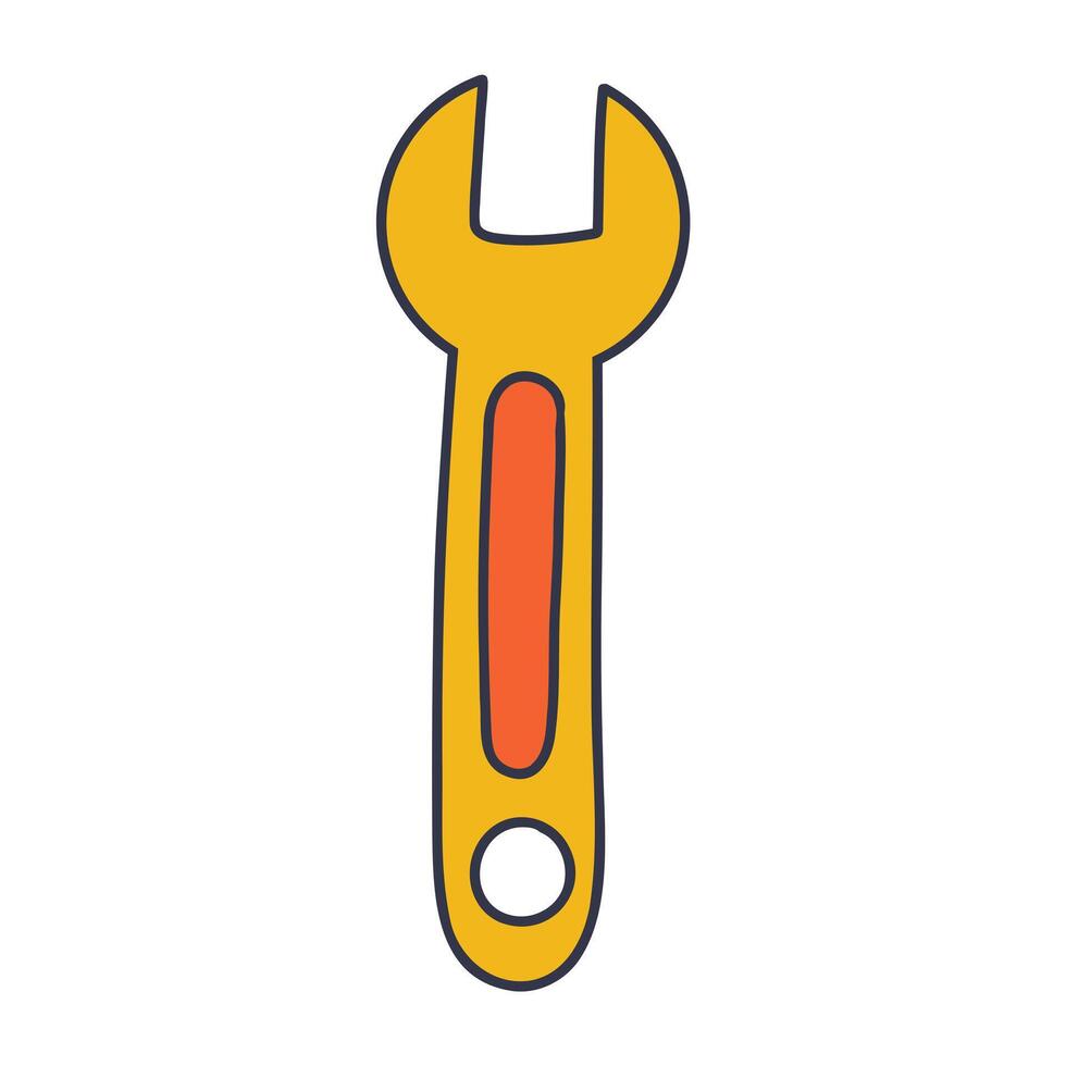 an illustration of a wrench with a yellow handle and an orange stripe, featuring a silver working end, representing a common tool for gripping and turning objects Pro Vector
