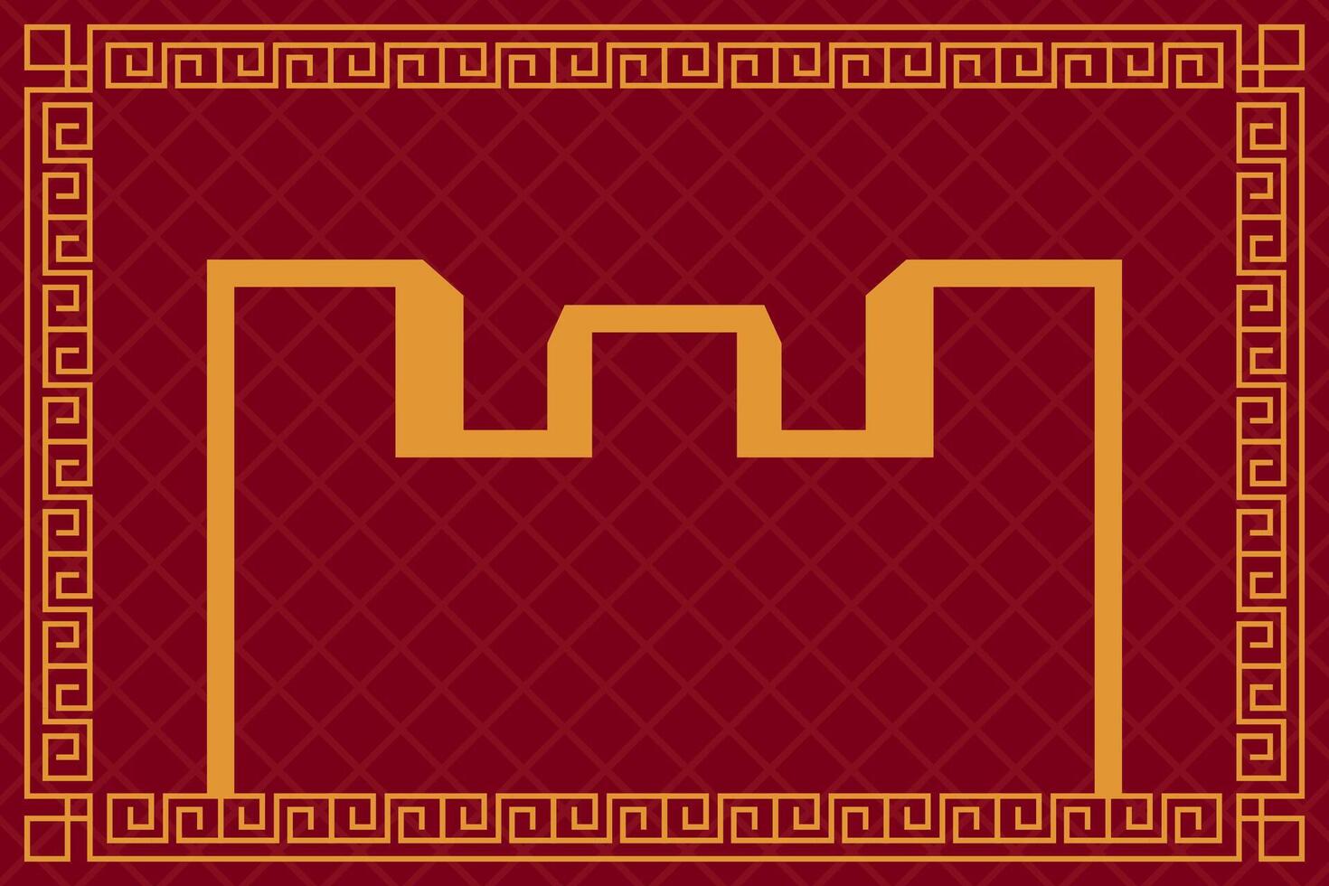 red and gold background chinese new year. abstract design. castle shape on the middle. old style border china pattern and square texture Pro Vector