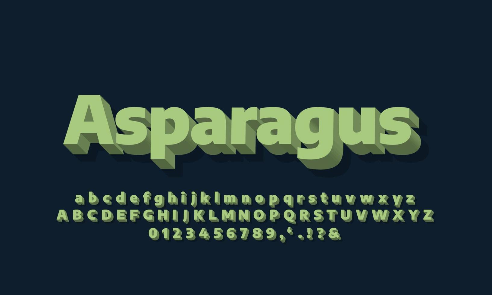 modern alphabet 3d soft green text effect or font effect design Pro Vector
