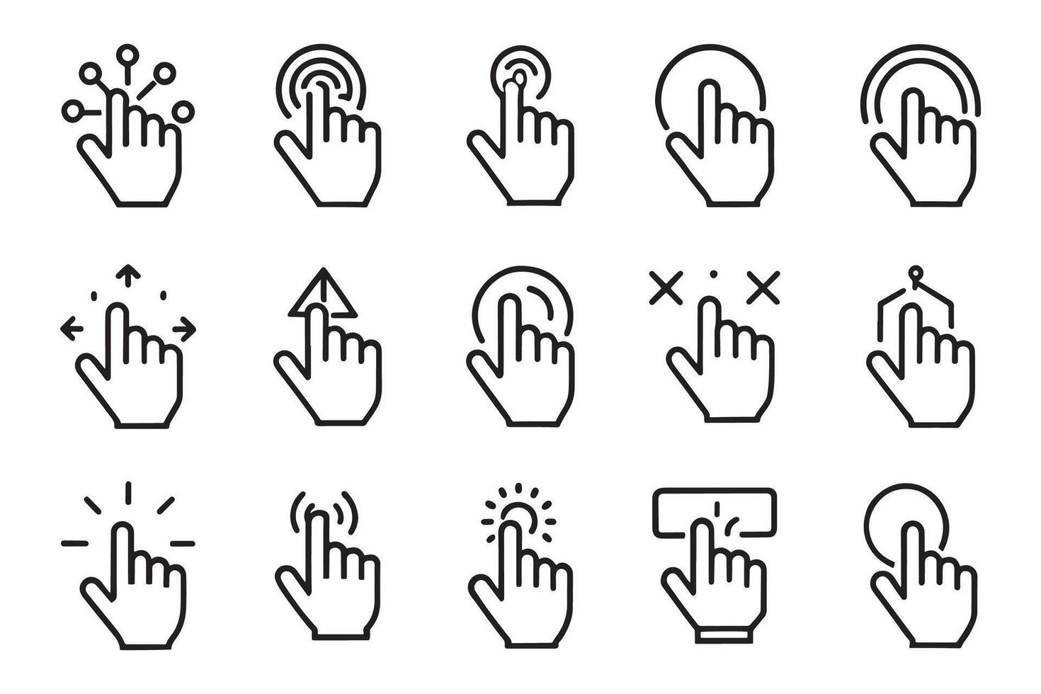 Clicking finger. Pixel cursor or computer mouse pointer related editable stroke outline icon set isolated flat illustration white background Pro Vector