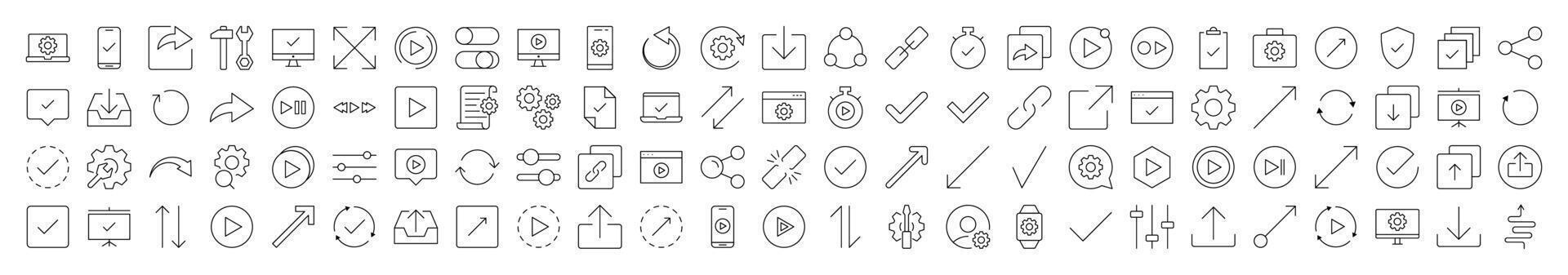 Arrows, Share, Check, Turn, Download, Settings Icon Set for UI, Placards, Books, Apps. Editable Stroke. Suitable for Web Sites, Books, Cards, Apps Pro Vector