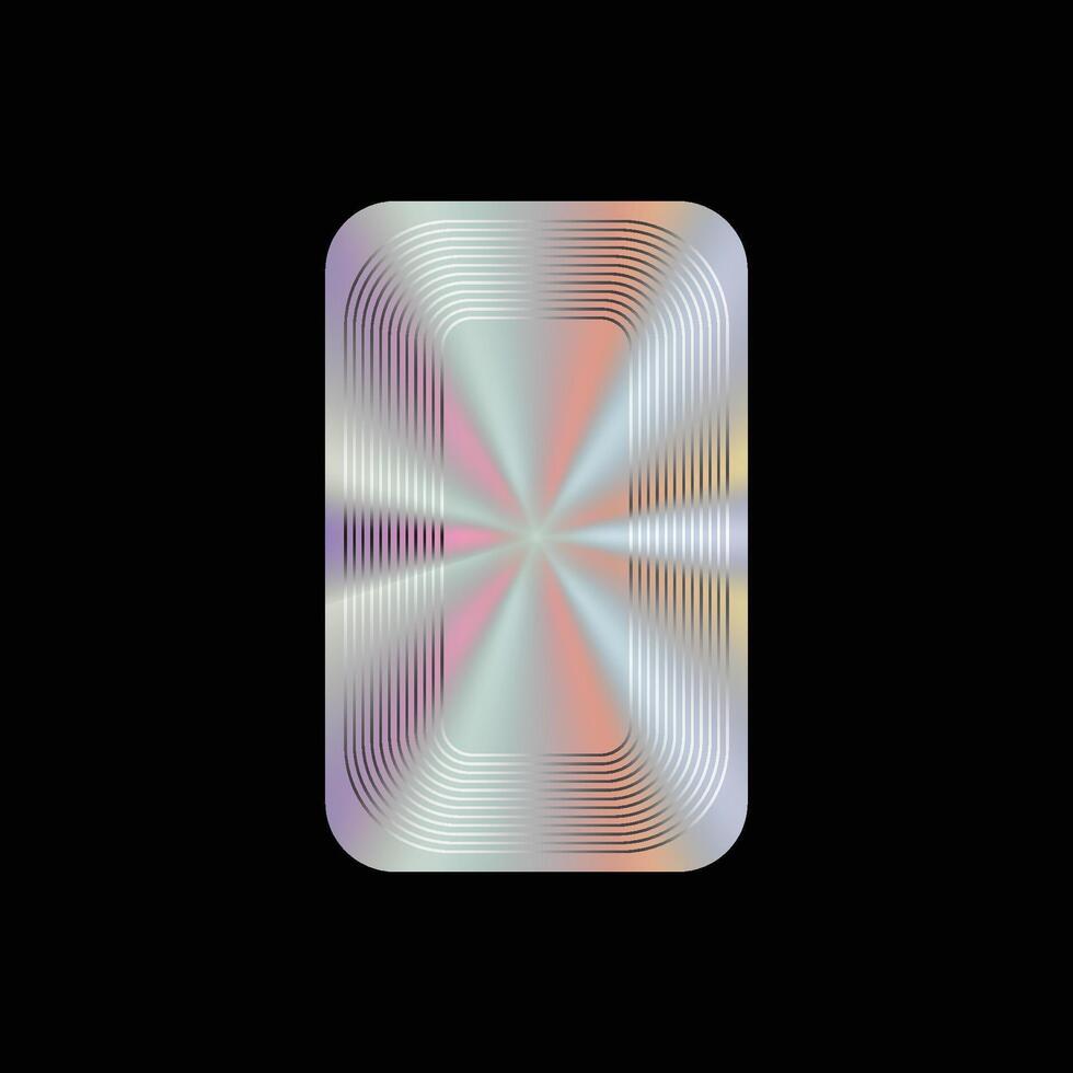 Holographic iridescent y2k sticker label with silver lines pattern rectangular geometric shape isolated Pro Vector