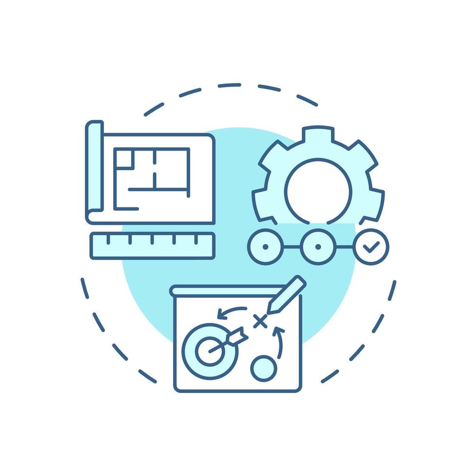Forward engineering soft blue concept icon. Systematic engineering process. Project workflow. Blueprint and gear. Round shape line illustration. Abstract idea. Graphic design. Easy to use in article Pro Vector