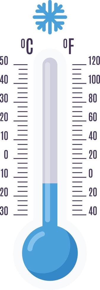 Thermometer displaying freezing temperatures in both celsius and fahrenheit scales, alongside a snowflake icon, symbolizing chilly weather conditions Pro Vector
