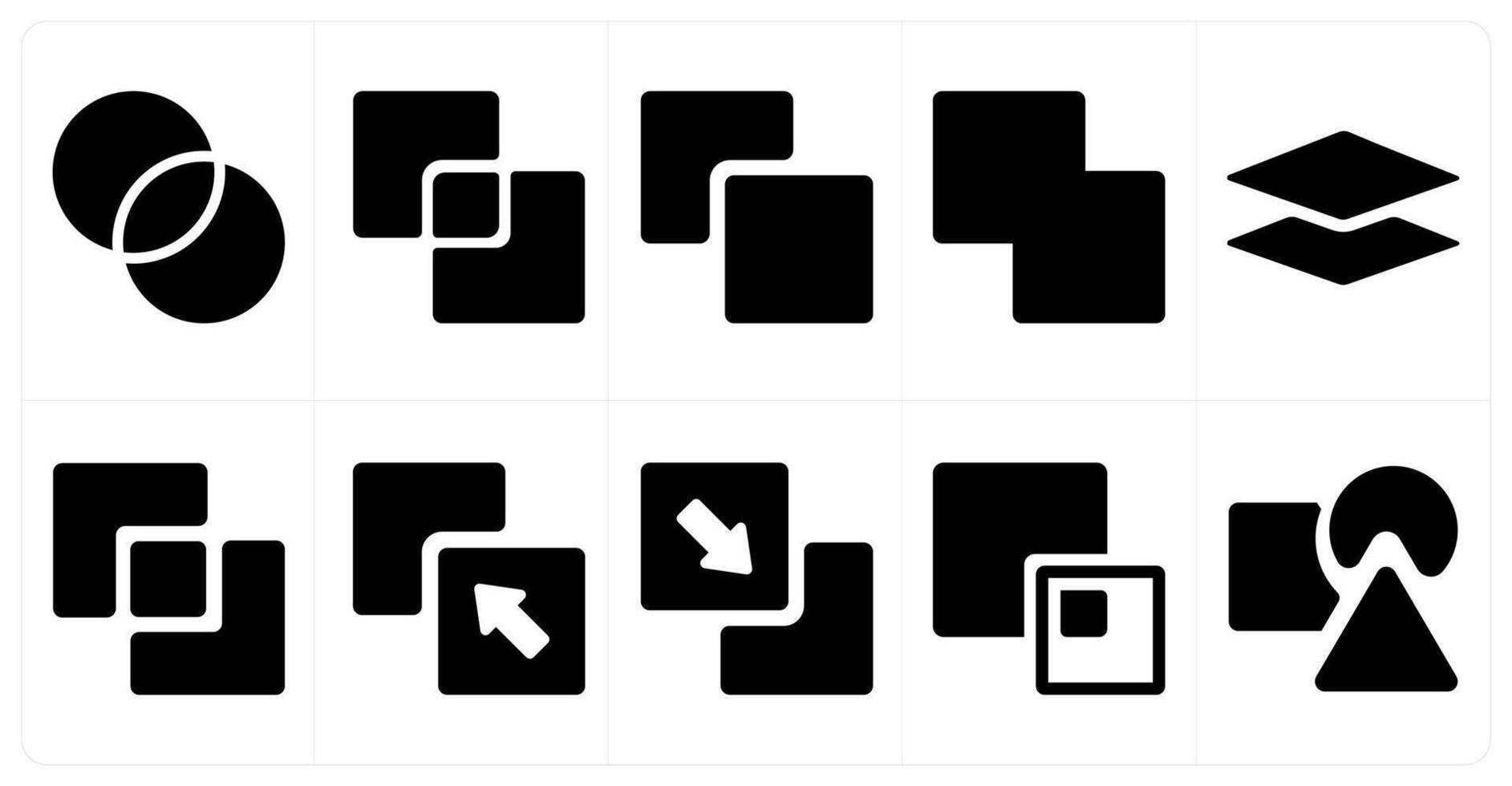 A set of 10 editing tools icons as intersection, intersect, subtract Pro Vector