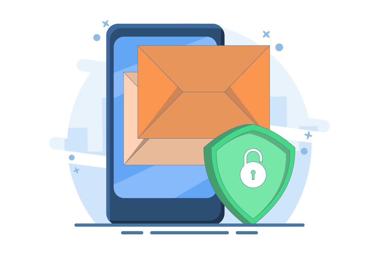 Email service security concept, Electronic email messages as part of business marketing. Cybersecurity, digital data protection suite. Protecting online access to email in an electronic mailbox. Pro Vector