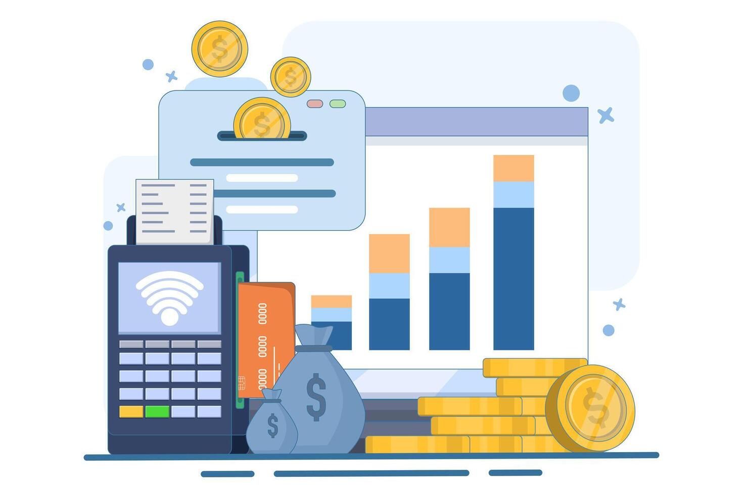 Business process and analyst concept, goals and objectives, Data analyst analyzes, explores and develops big data. business plan, finance, marketing, investment, flat illustration. Pro Vector