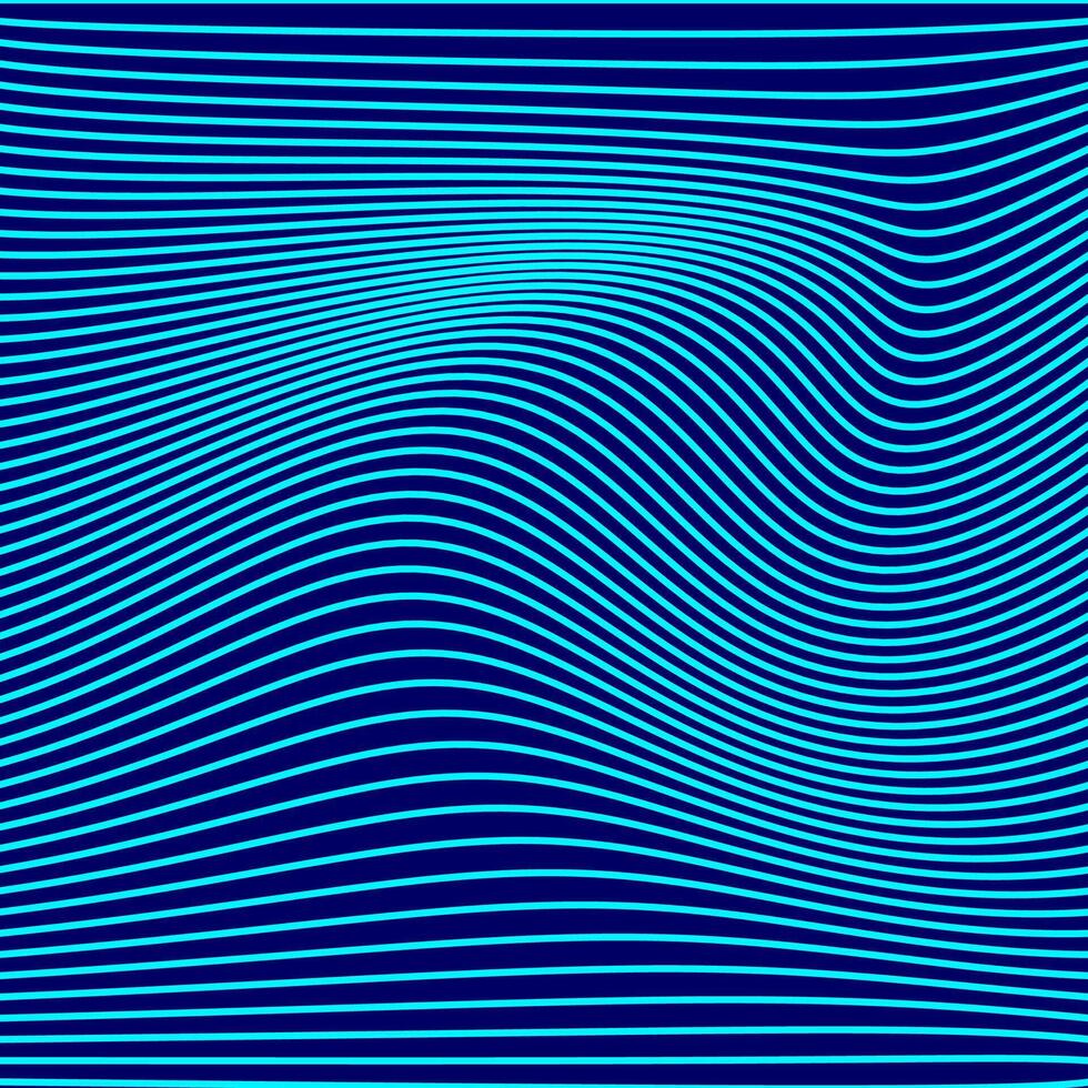 an optical illusion created with light blue wavy lines on a dark blue background. The lines vary in curvature, creating a sense of depth and movement, as if the surface is shifting or undulating. Pro Vector