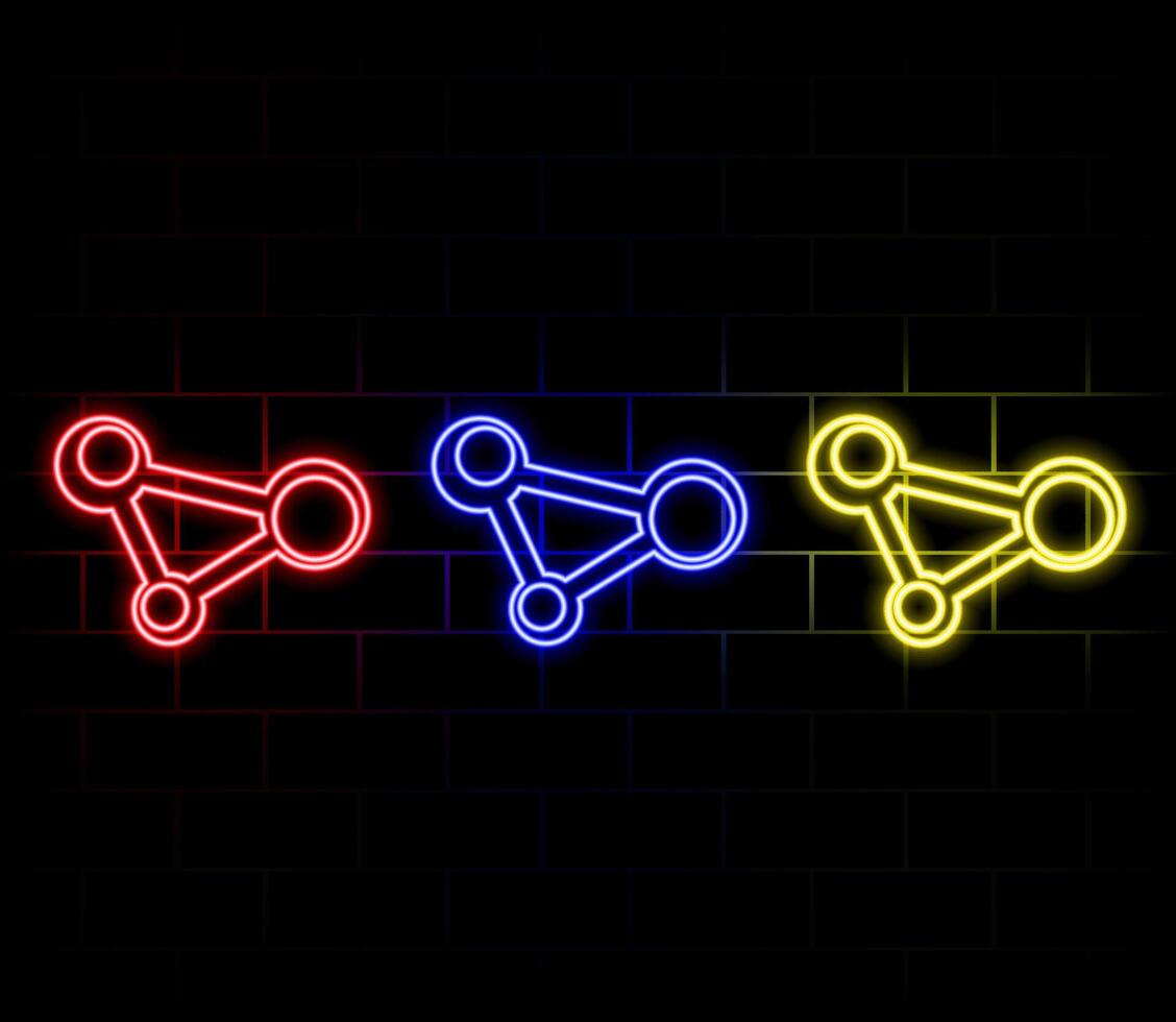 Share icon, connection symbol - network sharing icons, share line icon button, outline - connect, data sharing, link symbol. neon style. Pro Vector