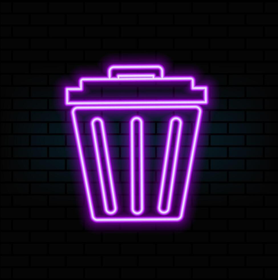 Blue neon flat graphic design for the delete or trash can icon. Icon of a recycle bin. Stylish flat design dustbin icon. garbage can, trash can, and trash bin icon Pro Vector