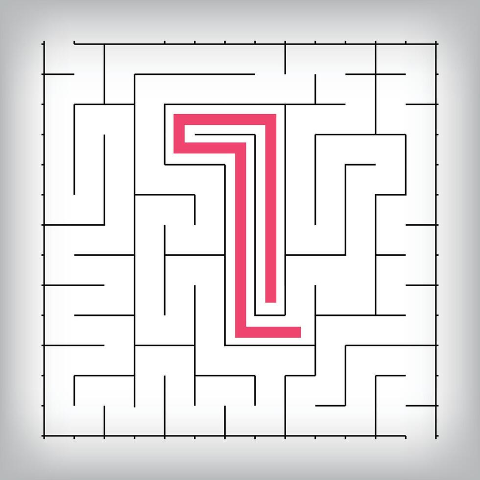 Square form linear number 1 maze puzzle. Tutorial confusing game activity. Pro Vector