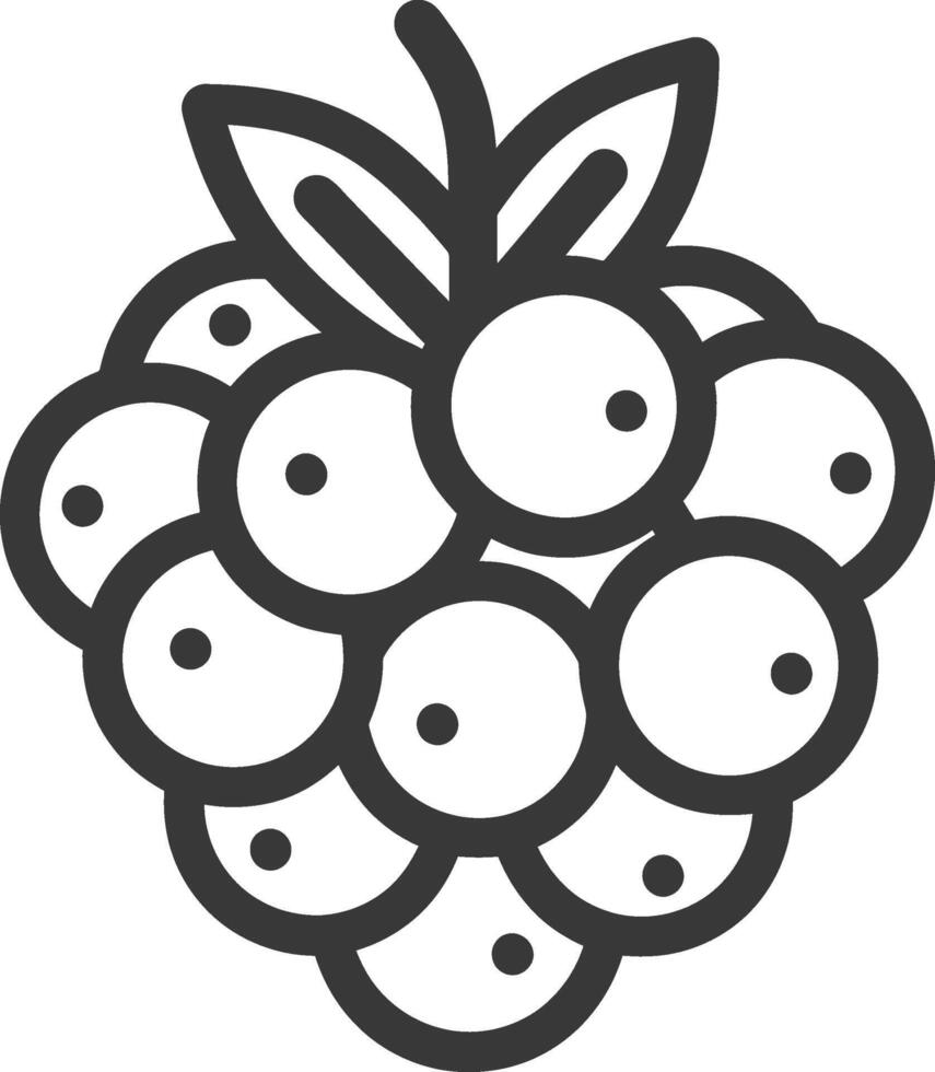 Line Drawing of a Single Raspberry with Leaves Pro Vector