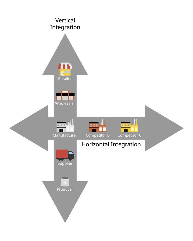 horizontal integration and vertical integration for financial statement Pro Vector