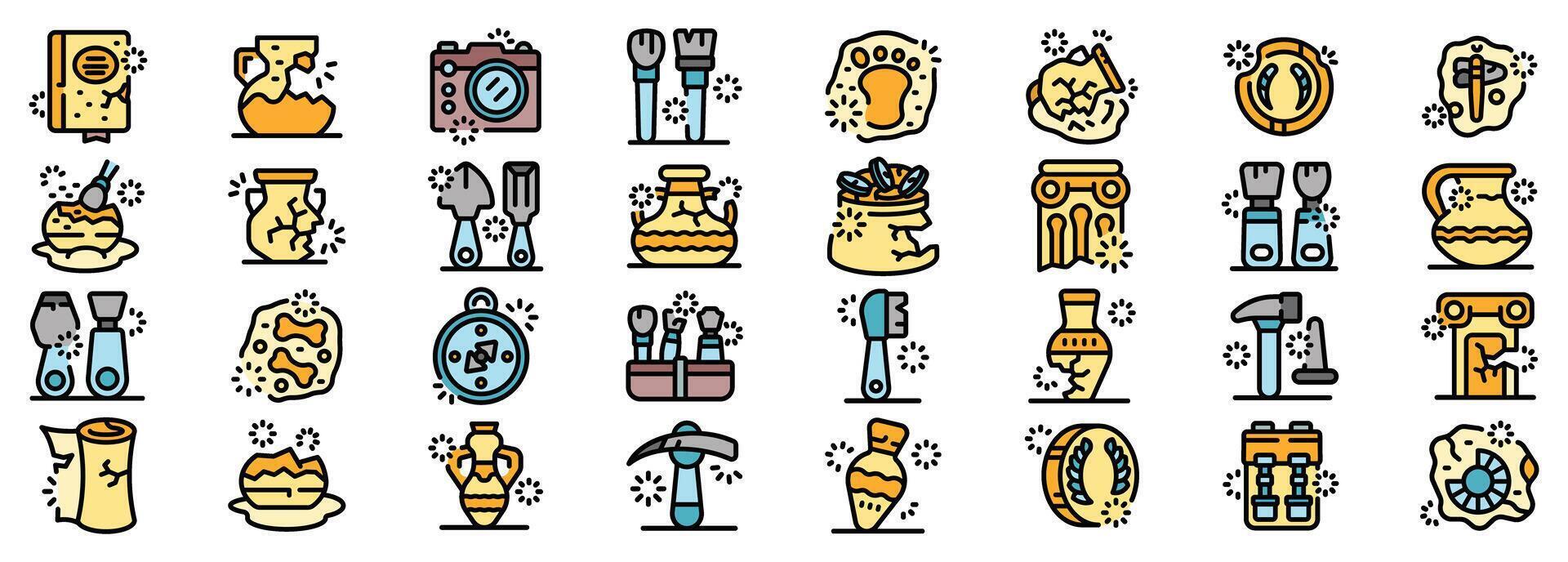 Archeologists exploring ancient ruins and artifacts using tools and equipment Pro Vector