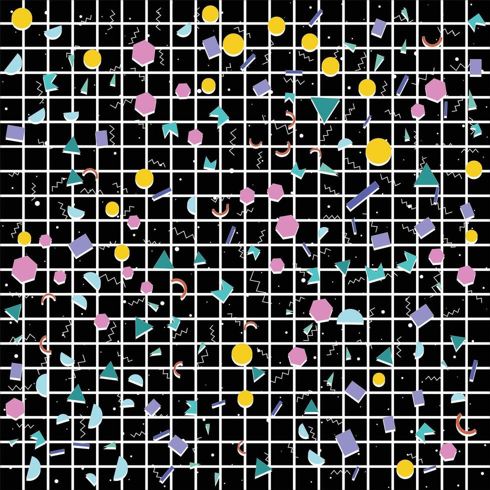 Retro abstract geometric background with grid line. illustration for hipsters Memphis style isolated in black Pro Vector