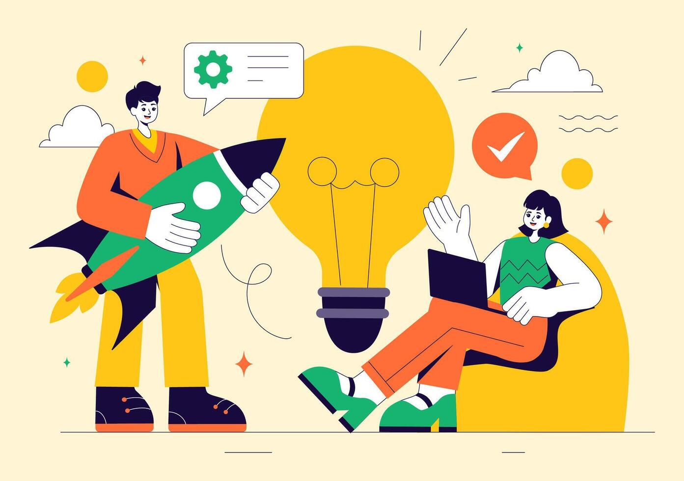 Startup Concept with Innovative Ideas, Software, and Web Design Elements Pro Vector