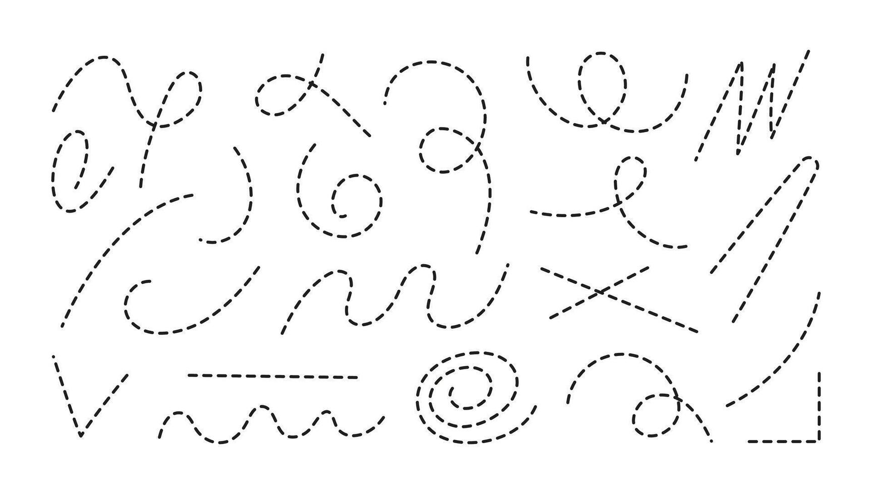 Dot lines, doodle dash pointers. Hand drawn curve abstract arrows. Dot circle elements, curve elements. icons Pro Vector