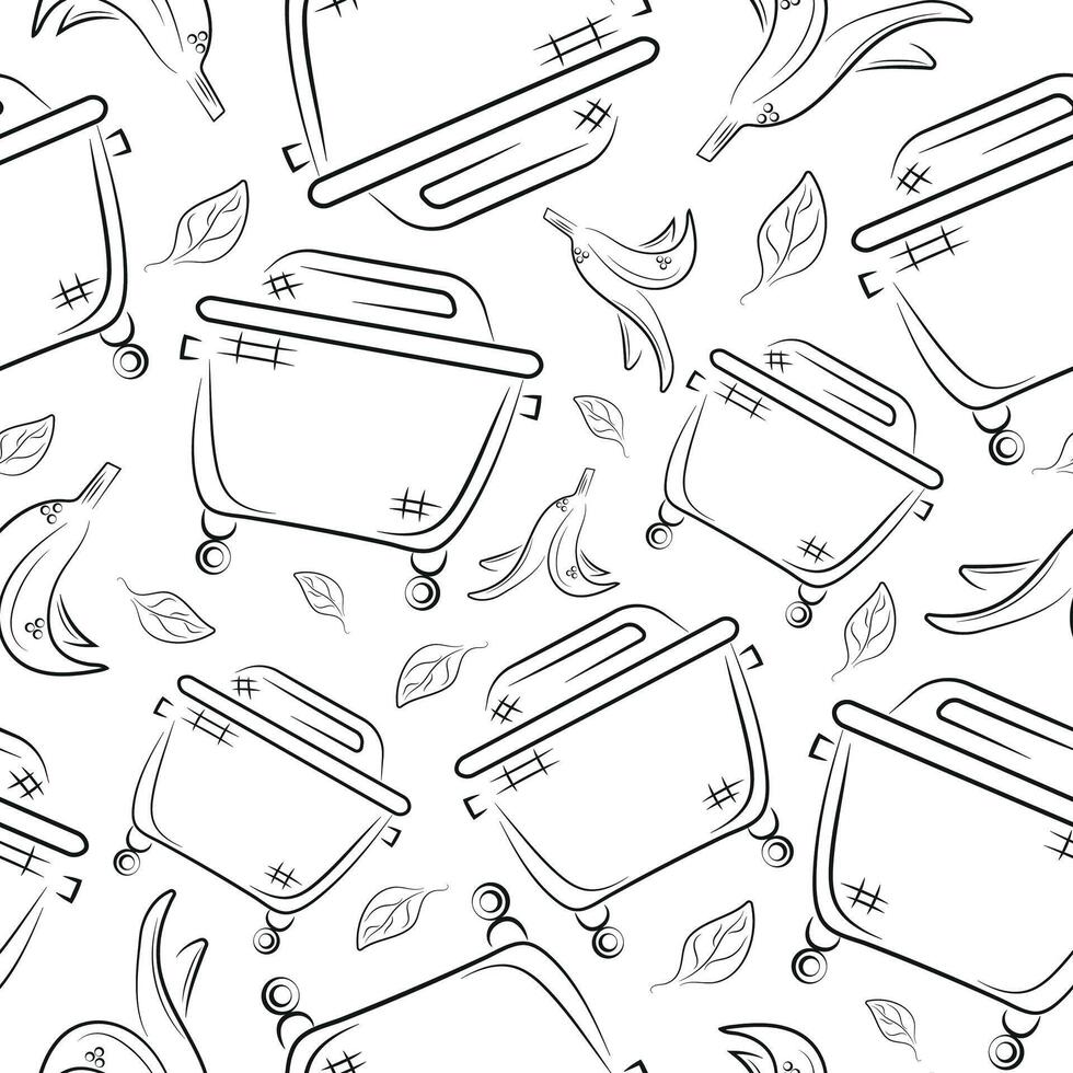 seamless pattern with a large square garbage can and various garbage placed chaotically, to fight against environmental pollution day vector