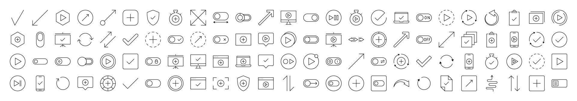 Interface Icon Pack. Contains Icons of Arrows, Plus, Check, Play that Can Be Used for Design of Cards, Posts, Apps, Web Sites Pro Vector