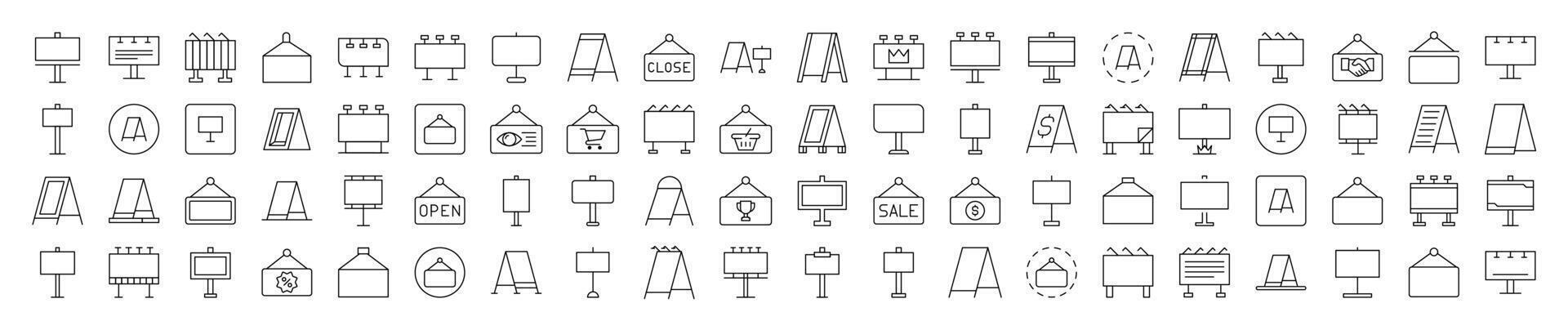 Sandwich Panel, Billboard, Signboard Line Icon Bundle. Editable Stroke. Minimalistic Linear Pictogram for Design of Cards, Apps, Banners, Posts Pro Vector