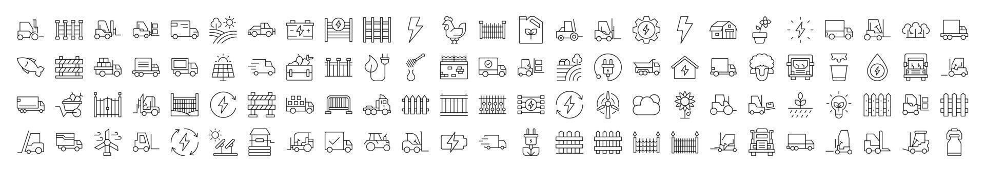 Agriculture Line Icon Set. Contains Icons of Tractor, Fence, Farm, Energy that Can Be Used for Design of Cards, Posts, Apps, Web Sites Pro Vector