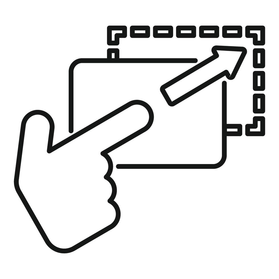Interactive digital screen showing expanding gesture with index finger and arrow symbol Pro Vector