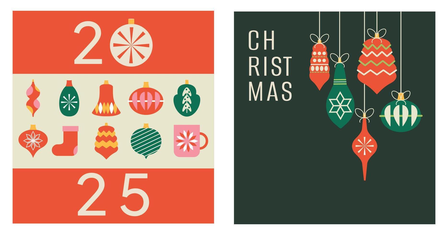 Set of banners. Christmas and New Year. 2025. Year of the snake. Mosaic. Neo geometric modern trendy design. Wrapping paper. Hand drawn. Element, shapes and frames. Seamless pattern Simple. Flat. Xmas Pro Vector
