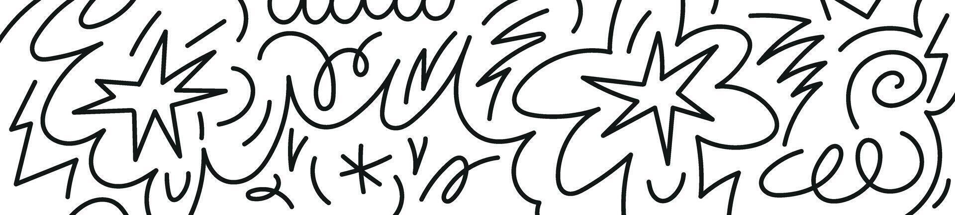 Hand-drawn elements fun abstract pattern with squiggle lines and shapes. background for kids art and graphic design. Flat illustration Pro Vector