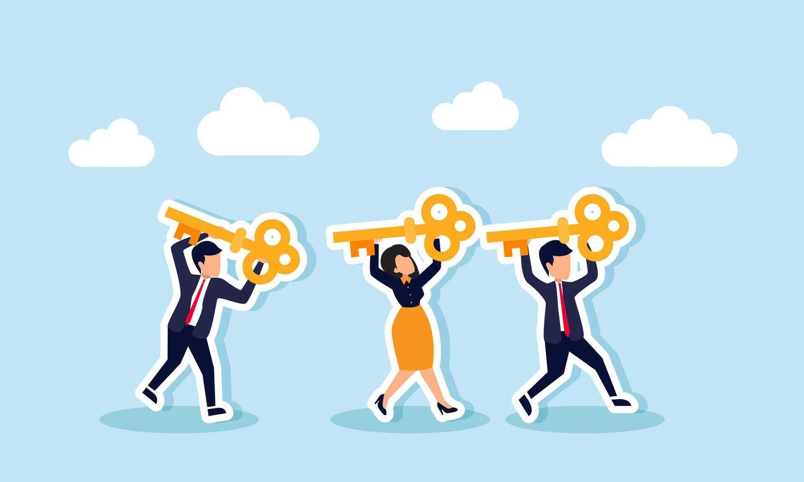 Some entrepreneurs hold the key, illustrating brainstorming ideas with business partners and finding solutions to business problems Pro Vector