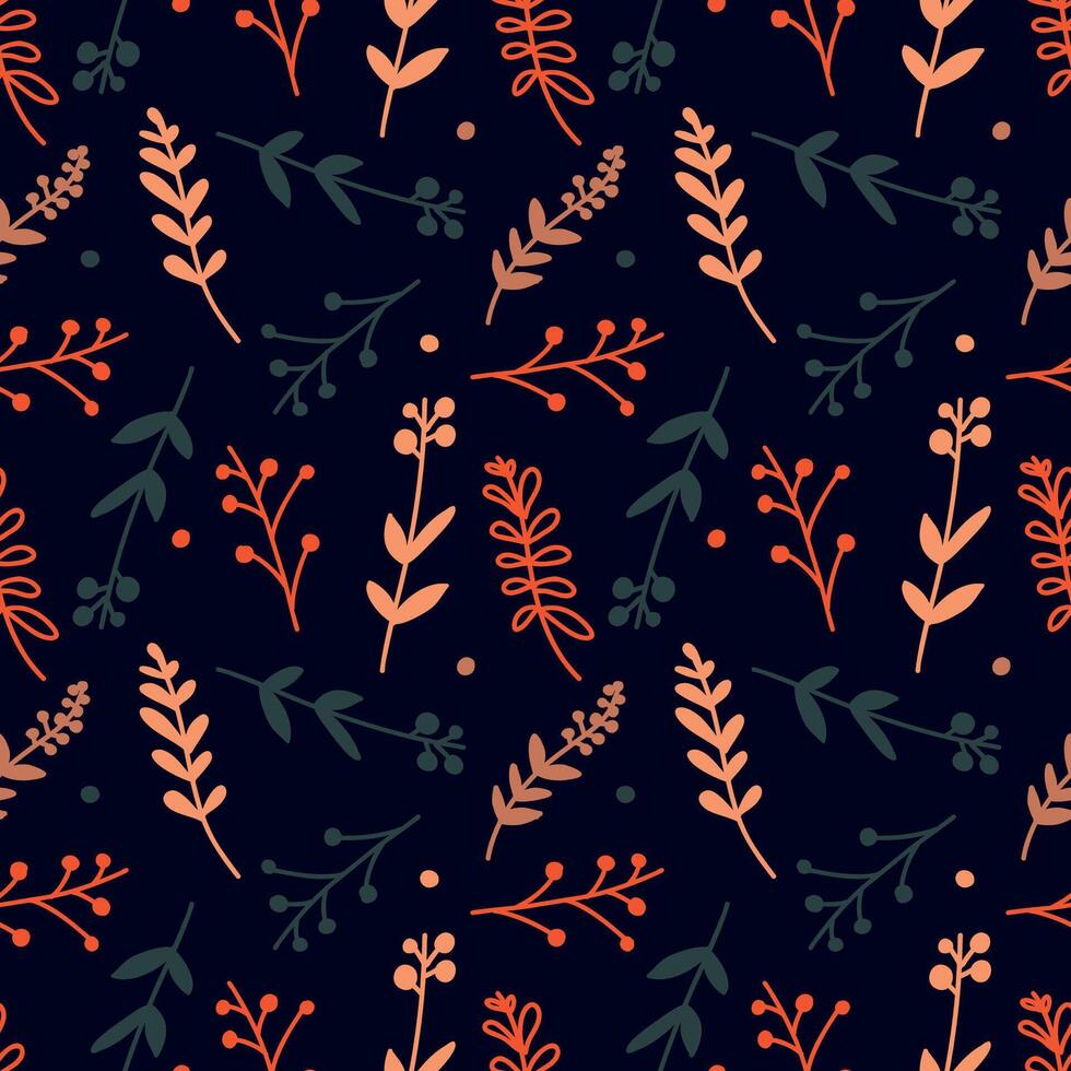 Seamless autumn pattern in the form of a solid line of hand-drawn elements of flowers, leaves, branches. vector