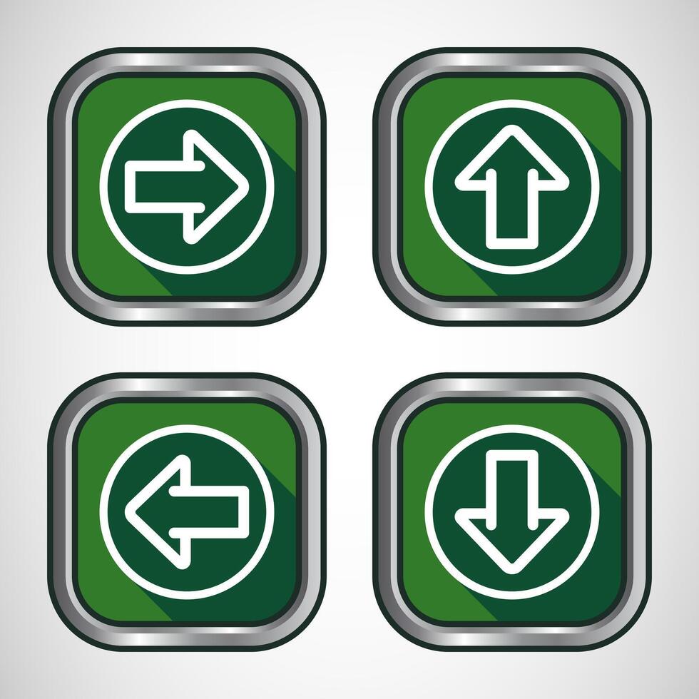 Right, Left, Up, Down Arrow Icon Design Illustration, Arrow Sign For Apps And Websites, Green Shadow Button Design Free Vector