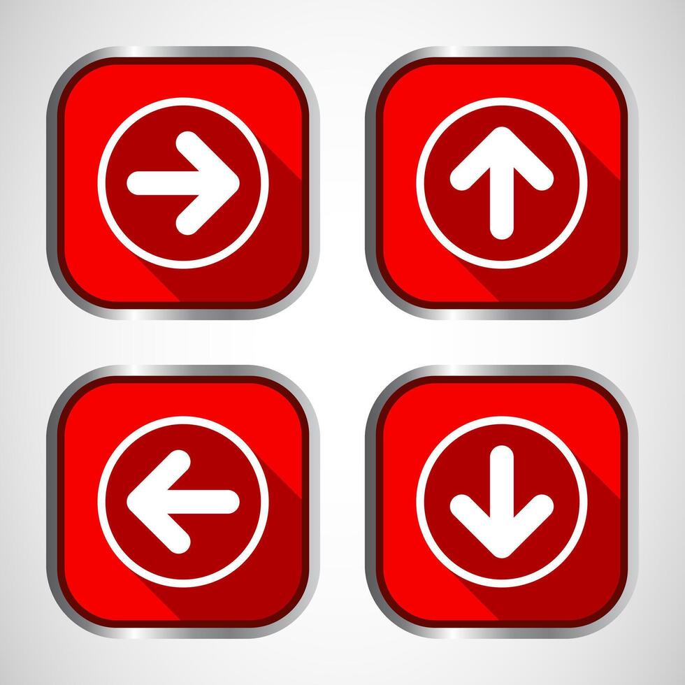 Right, Left, Up, Down Arrow Icon Design Illustration, Arrow Sign For Apps And Websites, Red Shadow Button Design Free Vector