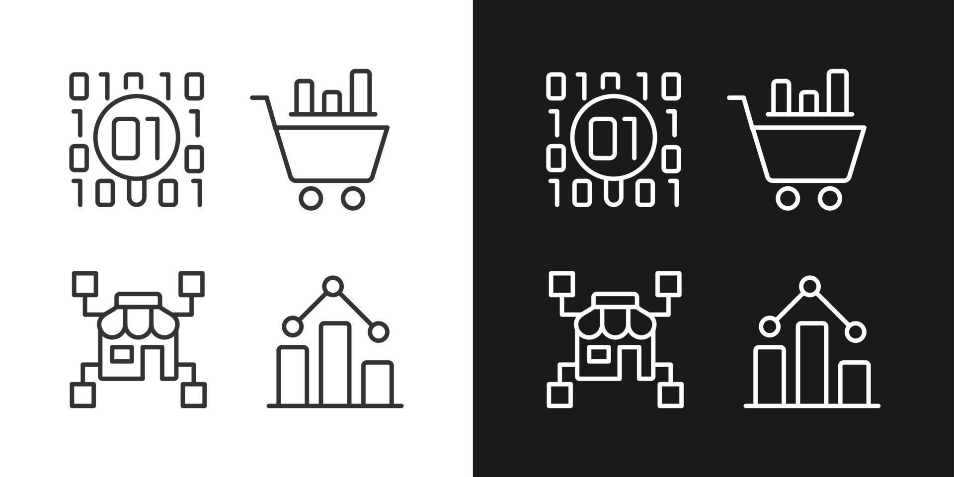 Retail data mining and analytics linear pixel perfect icons set for dark and light mode. Virtual marketing researching. Customizable thin line symbols. Isolated vector outline illustrations Pro Vector