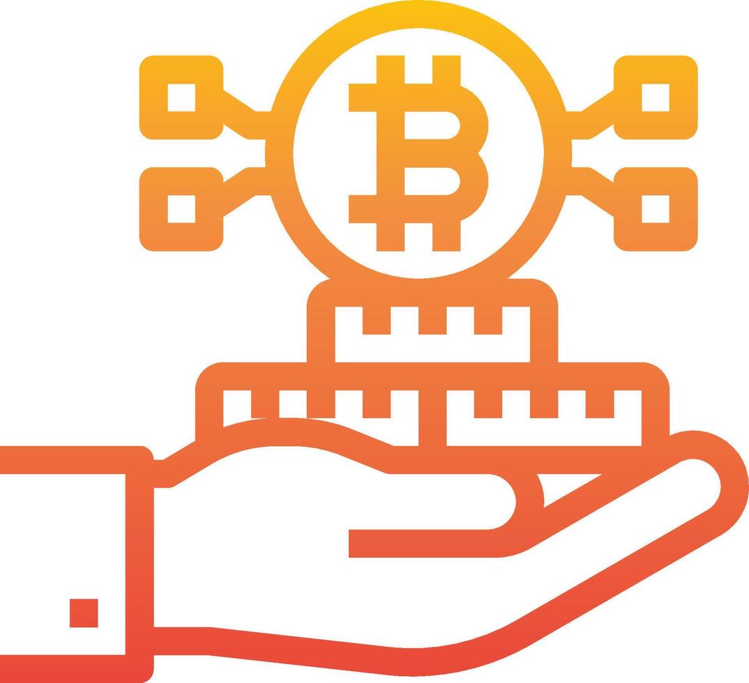 A hand holding a bitcoin in front of a stack of coins Free Vector