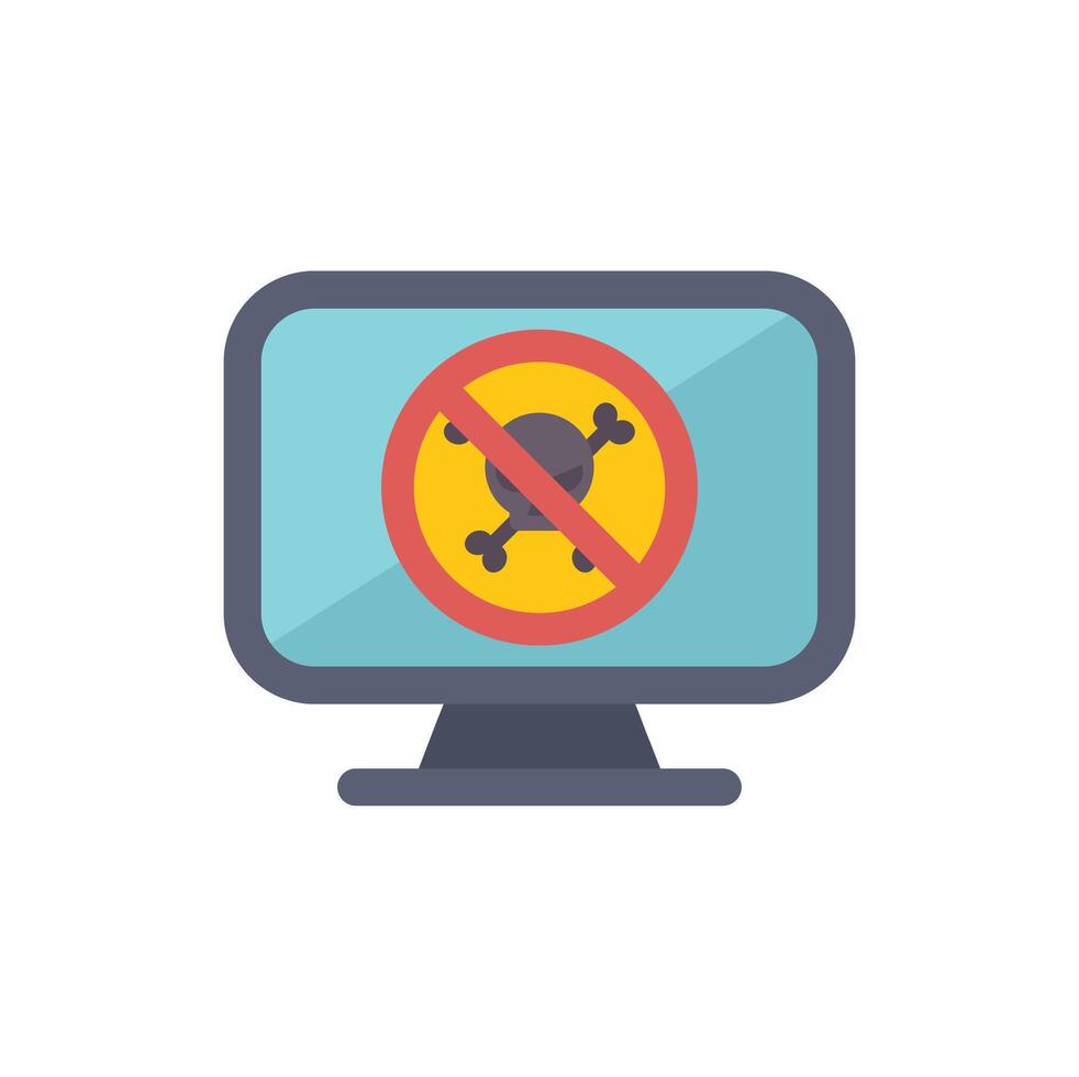Computer monitor displaying no malware allowed sign Pro Vector