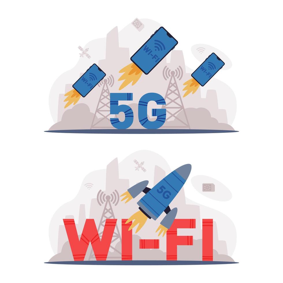 5G Network Wireless Technology and High-speed Internet Set Pro Vector