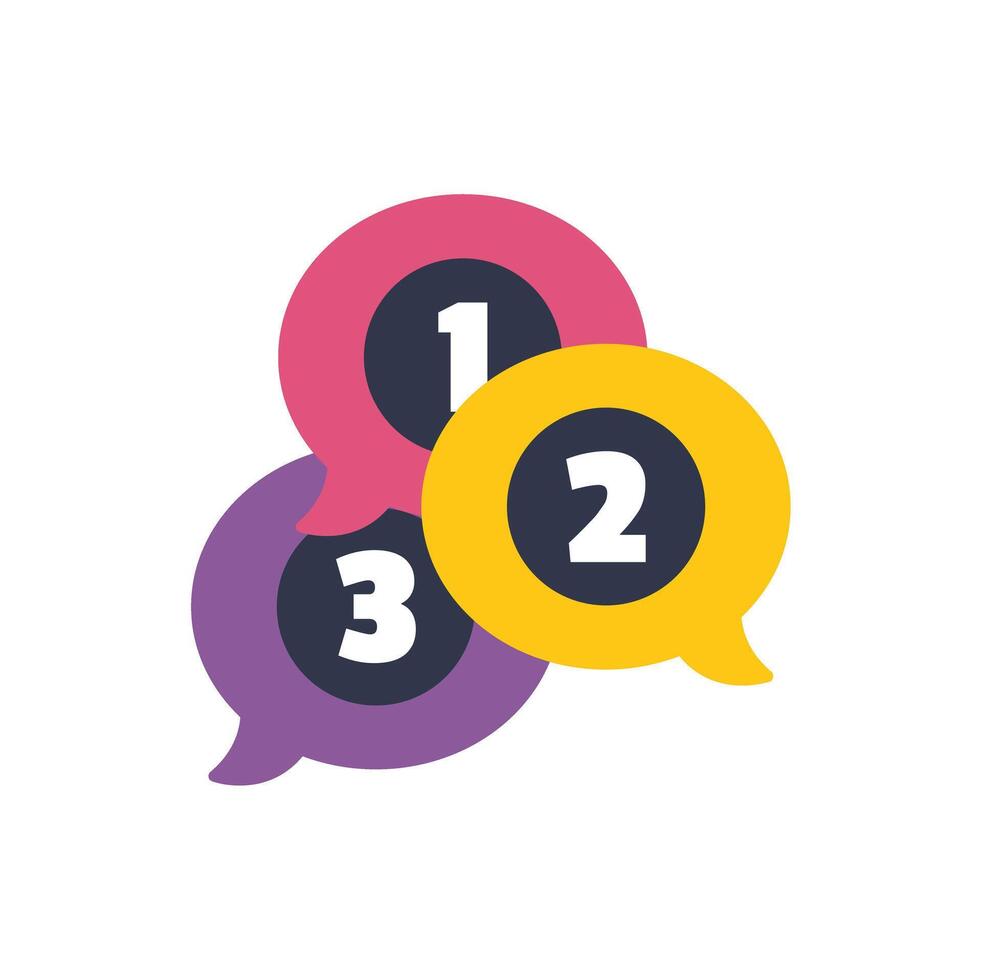 Three speech bubbles showing numbers one two three representing data driven solutions Pro Vector