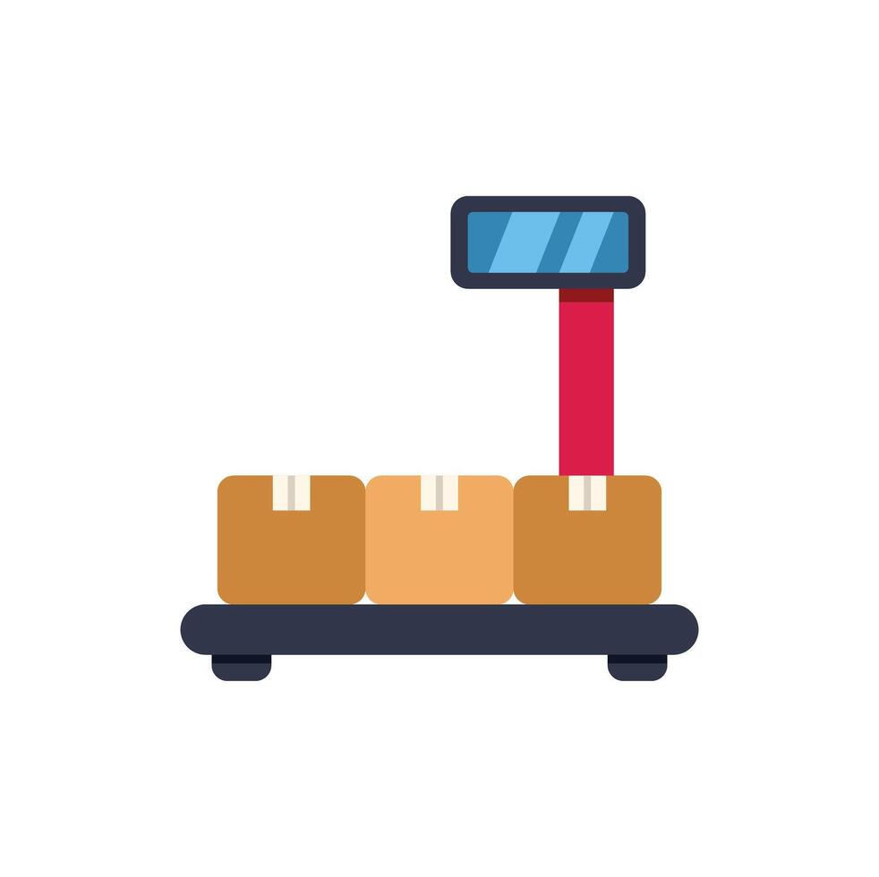 Warehouse scale weighing packages for delivery using digital screen displaying weight Pro Vector