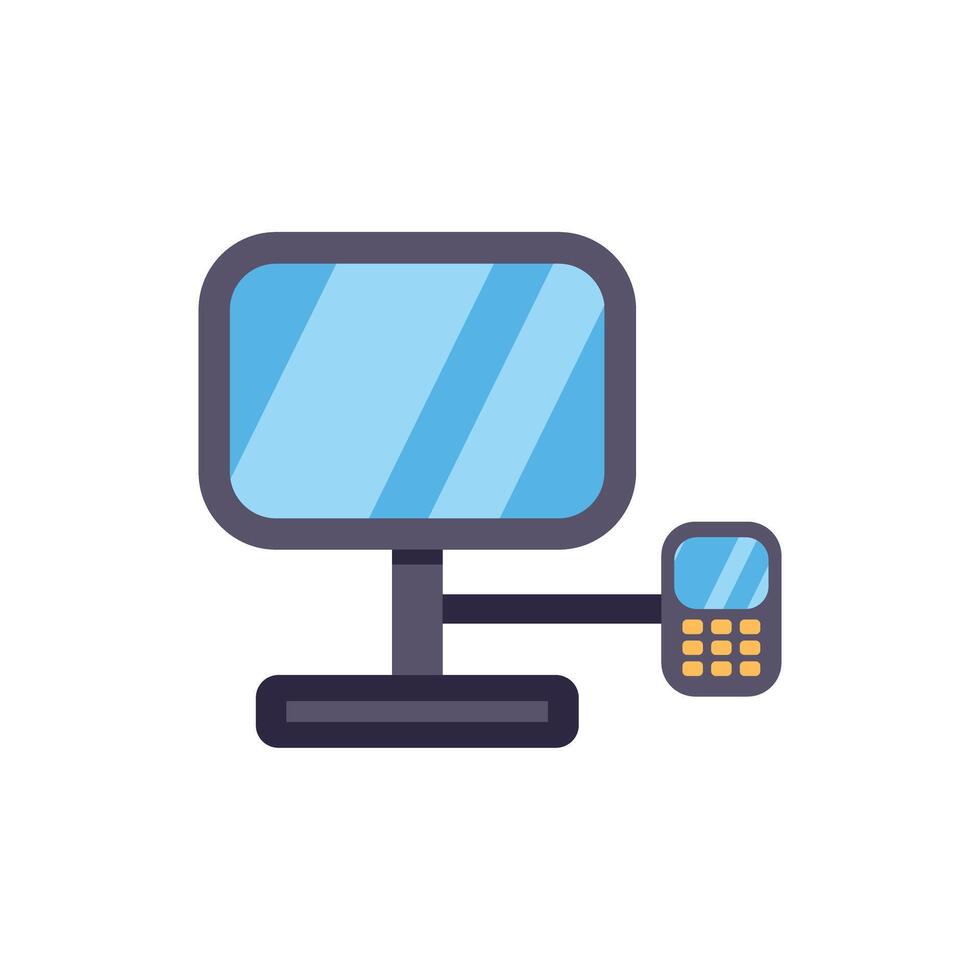 Desktop computer connecting to mobile phone using cable Pro Vector