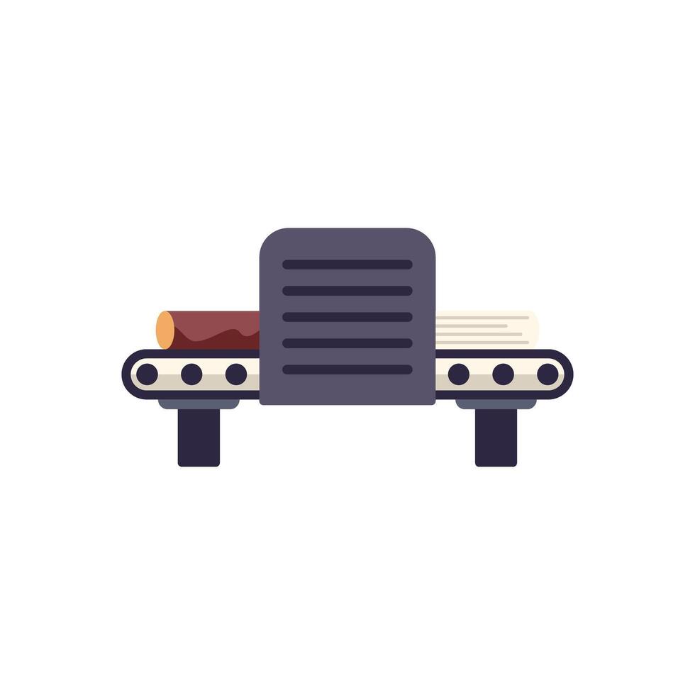Wood processing machine transforming log into lumber on conveyor belt Pro Vector
