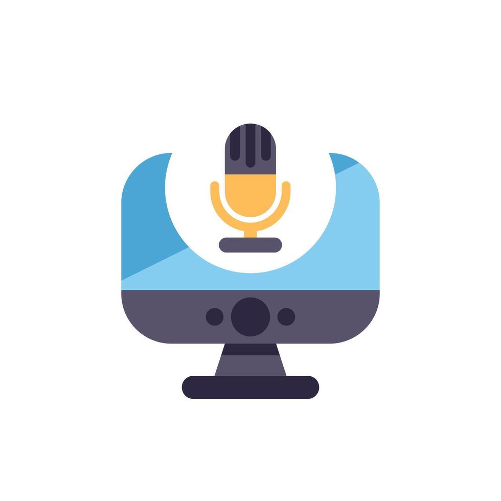 Desktop computer displaying microphone icon for podcast recording Pro Vector