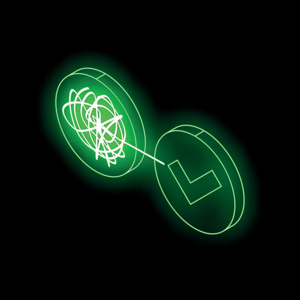 Problem solving, finding solution, untangling complex situation, green neon light Pro Vector