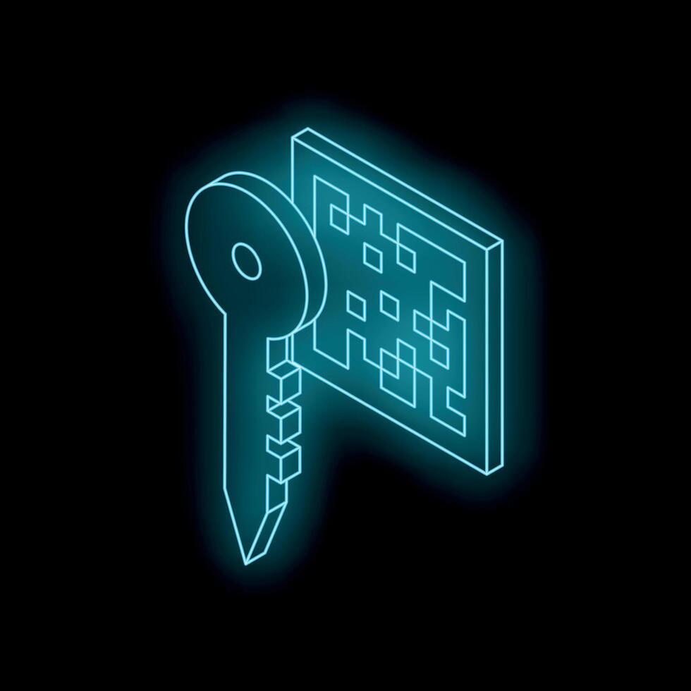Glowing key unlocking digital padlock in isometric view Pro Vector