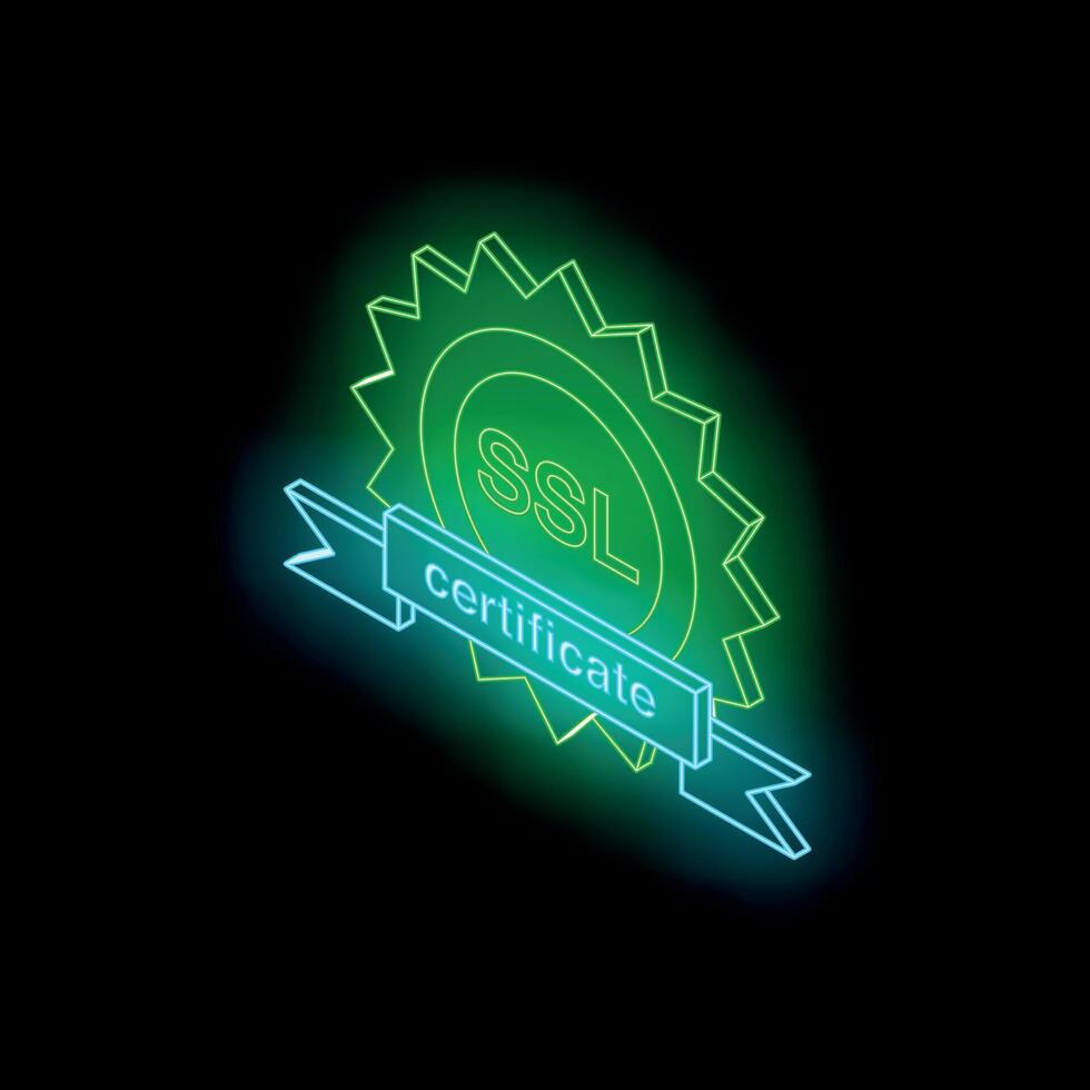 Neon green ssl certificate representing secure connection on black background Pro Vector