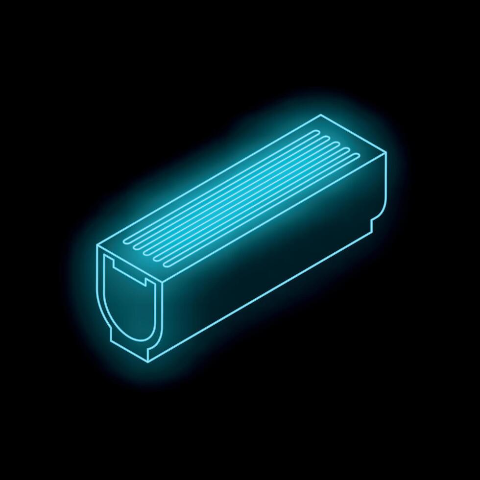 Neon icon of a ram memory module glowing on black background Pro Vector